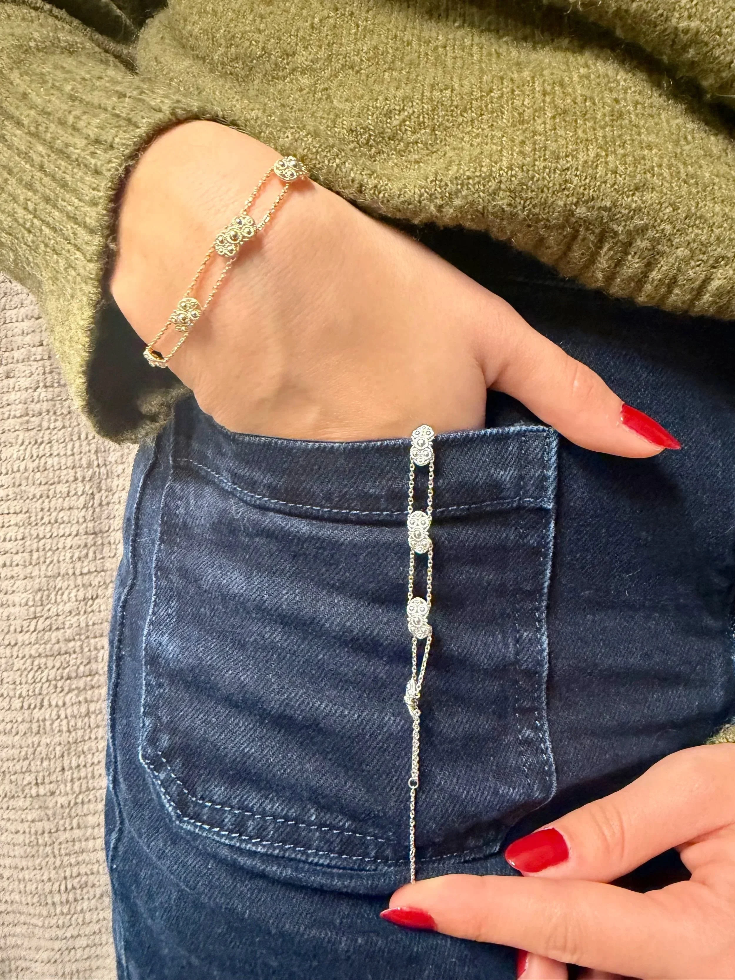 Inspirée par l’histoire et les traditions des Matelotes du Nord, Virginie perpétue et revisite les emblématiques Bijoux de la Côte d’Opale : Boulonnaise, Noeud d’Amour, Dorlots, Milanos, Porteloise … Découvrez ces bijoux marqués par l’histoire et revisités avec modernité.